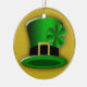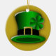 St Patrick’s Day: Leprechaun Hat © Sunny Mars Designs. This Irish St Patrick's Day hat standard round ornament features a green leprechaun hat a black band around it, a gold buckle and a shamrock attached to it.