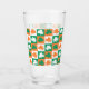 St. Patrick's day. Irish shamrock pattern in the Ireland flag colours of green, white and orange as a chequerboard design. A fun, patriotic, tall beer or beverage drinking glass for the holiday, or just to show your Irish heritege all year long. The clover block pattern repeats on the back as well, or delete that to leave just one side. Available as a single or buy a set.