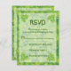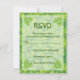 St. Patrick's Day Irish wedding RSVP response card, featuring a green white pattern and an elegant heart made of Irish green lucky clover/shamrock.