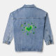 St Patrick's Day jeans jacket with lucky shamrocks. Cute 4 leaf clover design with green heart.