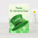 A pretty and simple greeting card for St. Patrick's Day that you can personalise with your own text if you don't already like what is written in it. The words are "May good luck follow you wherever you go" The cover is pretty with a leprechaun hat on a background of shamrocks. A sweet and somewhat generic card that would be good for anyone.