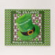 Cute Irish green St Patrick's Day leprechaun's hat on a Jigsaw Puzzle with abstract shamrock patterned background. Quirky font typography details and year can easily be customised with your own personal name, greeting and the appropriate year. A fun and unique gift idea for family and friends who celebrate the 17th March holiday festivities.