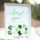 "Love is sweet , please take a treat" sign with green shamrocks for a Bridal Shower St. Patrick's Day theme: