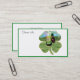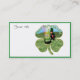 Cute leprechaun with lucky four leaf clovers. This business card can be used as an information card, and is available in three sizes and several paper types. The green border can be removed and you can add your own text to personalise.