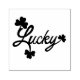 St. Patricks Day design features Lucky script and clover leafs in green. Personalise with your name or personal message.
