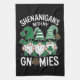 St Patricks Day Lucky Shamrock Leopard Gnomes Tea Towel