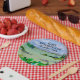 These St Patrick's Day paper plates are decorated with an Irish landscape of shamrocks, stonewalls, and a round tower.