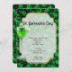 This is a fun way to invite your friends and family to your St Patrick's Day party. The background is green with shamrocks or clovers. In the centre there is a white insert to frame your text. To the left side there is a graphic of a green martini cocktail. A fun festive invitation.