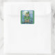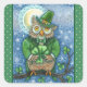 ST. PATRICK'S DAY OWL, 4 LEAF CLOVER LEPRECHAUN SQUARE STICKER