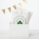 St. Patrick's Day party cute favour bag, with a green shamrock design with a green border on a white background. With green script typography lettering, you can customise with your own text. Great for your St. Patrick's Day party celebration.