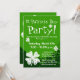 St Patricks Day party invitations | Customisable. Green St Pattys Day design with lucky shamrocks. Vintage 4 leaf clover decorations for your Irish Saint Paddys Day celebration.