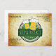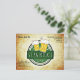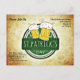 St. Patrick's Day party invitation postcard with a big green circle on retro or vintage parchment style design. Cheers to the brew and celebration. Personalise it with your information. See all my shops at https://bit.ly/SandyspiderStores