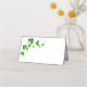 This folded name place card is shown in white with a festive St. Patrick's Day clovers print.
