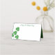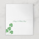 This folded name place card is shown in white with a festive St. Patrick's Day clovers print and has a green colour inside to it.