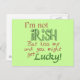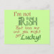 Funny St. Patrick's Day T-shirts and gear for the bar scene or any scene. Saint Patrick's Day Pickup Line shirts and merchandise read, I'm not Irish but Kiss me and you might get Lucky!