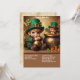 St. Patrick's Day party invitation with an adorable child dressed up and a leprechaun by the pot of gold. A retro or vintage look with a parchment-style design on the back of the card. Cheers to the brew and celebration. Personalise it with your information. See all my shops at https://bit.ly/SandyspiderStores