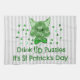 He's mangy, green and wearing a bow tie. He's the St Paddy's Day scrapper cat and he says "Drink up Pussies, it's St. Patrick's Day."