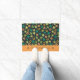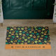 Festive St. Patrick's Day doormat features a fun pattern of four leaf clover shamrocks, lucky golden yellow horseshoes, leprechaun hats, green beer and orange Irish kisses. Personalise with your family name along the bottom, optionally embellished with shamrocks on either side.