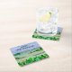 These paper coasters are decorated with an Irish landscape of shamrocks, stonewalls and a round tower.