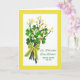 Celebrate St. Patrick's Day by sending family and friends a greeting card from both of you. Card has shades and tints of yellow, green, and bright white. Image is a digital illustration with a photograph of a springtime bow. Customise the inside greetings as you like, before checkout. Art, image, and verse © Shoaff Ballanger Studios, 2021.