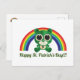 St. Patricks Day Teddy Bear and Rainbow Postcard