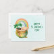Postcard with an adorable illustration featuring a smiling green and gold pot with a cute rainbow,