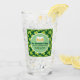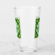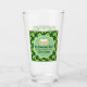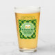 A St. Patrick's Day beer glass which says official drinking team with a personalised name. Illustrated with 2 mugs of beer inside a green circle. A repeating pattern with clovers in the background.