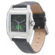 You can now admire FrankenCheese surrounded by lucky four leaf clovers and rainbow polka dots to add an extra style to this drawing. I call this drawing, "St. Patrick's FrankenCheese," now added onto this women's square watch. You can order this square watch in black leather strap or brown leather strap.