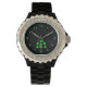 You can now admire FrankenCheese surrounded by lucky four leaf clovers and rainbow polka dots to add an extra style to this drawing. I call this drawing, "St. Patrick's FrankenCheese," now added onto this women's rhinestone black enamel watch.