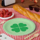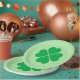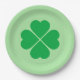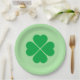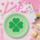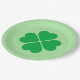 Paper plate is shown in a green St. Patrick's clover print on the round style plate.