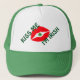 St.Patrick's Day Trucker Hat/Kiss me I'm Irish with lips and clover 100% polyester foam front Wide area to feature your design 100% nylon mesh back keeps you cool Adjustable from 17" to 24" Available in 11 colour combinations