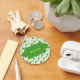 Personalise this cute design of colourful four leaf clovers with a name or text. The background is a pattern of yellow, light green and dark green shamrocks. In front of the festive pattern is a green, customise-able label with matching yellow dotted border. This would make a great purchase just before St. Patrick’s Day!