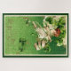 Large puzzle with a lovely Irish lass who is not afraid to fly up into the air on a pipe with green ribbon for harness. Surrounded by clovers she is a dashing St. Patrick's Day greeting.