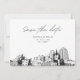 Modern St. Paul black and white save the date invitation. The front showcases a stunning sketch, setting the perfect tone for your wedding day. Add your own photo to the back and customise the text to make it your own. Enter the Zazzle design tool for additional design customisations.