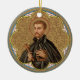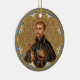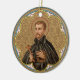St. Peter Claver (1580-1654) was a Spanish Jesuit priest and missionary. In 1610, St. Peter volunteered to serve in the New Kingdom of Granada in the Americas, which encompassed present-day Panama, Colombia, and Venezuela. There he worked for forty years ministering to slaves upon their arrival at Cartagena, a major hub in the Transatlantic slave trade, and on the plantations in the neighbouring countryside. His tireless efforts not only to convert the slaves to Catholicism by preaching Christ crucified but to ameliorate their sufferings earned him the epithet “Slave of the Africans”. + Here St. Peter is shown clad in Jesuit garb—a black cassock and collared cape. He holds a simple brown wooden cross and a crown of thorns, symbols of Jesus as “a man of sorrows and acquainted with grief” (Isaiah 53:3). The image is enclosed in an inner frame reminiscent of a Gothic eight-petalled rose (or wheel) window; the corners of the simple, square outer frame are filled with heraldic thistles. + St. Peter Claver died on 8 September 1654 of natural causes after a long illness. He is patron saint of Inter-racial justice, African Americans, African missions, slaves, and the Republic of Colombia. + Feast: September 9 + Image Credit (BK 058): Antique image of S[aint] Petrus [Peter] Claver, S.J., originally published in chromolithography by B. Kühlen, Mönchengladbach, Germany, unnumbered Jesuit Series, late 19th century, from the designer’s private collection of religious ephemera.