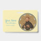 St. Peter Claver (1580-1654) was a Spanish Jesuit priest and missionary. In 1610, St. Peter volunteered to serve in the New Kingdom of Granada in the Americas, which encompassed present-day Panama, Colombia, and Venezuela. There he worked for forty years ministering to slaves upon their arrival at Cartagena, a major hub in the Transatlantic slave trade, and on the plantations in the neighbouring countryside. His tireless efforts not only to convert the slaves to Catholicism by preaching Christ crucified but to ameliorate their sufferings earned him the epithet “Slave of the Africans”. + Here St. Peter is shown clad in Jesuit garb—a black cassock and collared cape. He holds a simple brown wooden cross and a crown of thorns, symbols of Jesus as “a man of sorrows and acquainted with grief” (Isaiah 53:3). The image is enclosed in an inner frame reminiscent of a Gothic eight-petalled rose (or wheel) window; the corners of the simple, square outer frame are filled with heraldic thistles. + St. Peter Claver died on 8 September 1654 of natural causes after a long illness. He is patron saint of Inter-racial justice, African Americans, African missions, slaves, and the Republic of Colombia. + Feast: September 9 + Image Credit (BK 058): Antique image of S[aint] Petrus [Peter] Claver, S.J., originally published in chromolithography by B. Kühlen, Mönchengladbach, Germany, unnumbered Jesuit Series, late 19th century, from the designer’s private collection of religious ephemera. + Feel free to change texts, fonts, and colours!