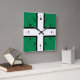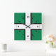 Wall Clock with design with a flag of historic county of Devon, in England, Great Britain; green flag with a white cross with a black border