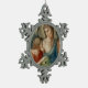 Image Credit (M 012): Antique vignette of St. Raphael the Archangel and Tobias, 19th-century hand-coloured engraving, original publisher unknown, from the designer’s private collection of religious ephemera. Tobias holds a large fish that he caught in the Tigris River at the archangel’s direction. Its various body parts were used to exorcise a demon and to cure Tobias’s father of blindness. + Feast: September 29