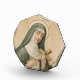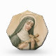 Wife, Mother, Widow, Nun—St. Rita of Cascia (1386-1457) experienced many stages of life. Life, however, had a way of putting her between a rock and a hard place. For this reason, she is venerated as patron saint of lost and impossible causes. Devoted to Christ’s Passion, she received a partial stigmata at the age of sixty: a chronic wound in the forehead as if from a crown of thorns that bled for the next fifteen years. It is her principal attribute. + Feast: May 22 + Image Source (M 015): Antique image of St. Rita [of Cascia] from a 1904 devotional print in chromolithography originally published by A. & M. B. [Albrecht & Meister of Berlin], Germany. From the designer’s collection of religious ephemera.