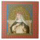 She was born Isabel Flores de Oliva in Lima, Peru, but is better known as St. Rose of Lima, the first saint born in the Americas. According to tradition, a servant in the Flores household dreamed a dream in which the infant Isabel’s face was transformed into a rose. Thereafter, the nickname “Rose” stuck. It became official in 1597 when she took the name for herself at her confirmation by Archbishop St. Toribio de Mogrovejo. Quite naturally, roses of all varieties have become her attribute. In art, she is depicted crowned with roses (as here), holding roses, or in a setting with potted roses or flowering rose bushes. + Prefer a solid colour background? Delete the pattern image and see the Colour Palette postcard for recommendations. + Image Credit (BK 020): Antique image of St. Rose of Lima from a late 19th century chromolithographic devotional print with gilt accents (Dominican Series, No. 10), originally published by B. Kühlen, at Mönchengladbach, Germany, from the designer’s private collection of religious ephemera. + Feast: August 23