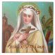 In this lovely depiction from a devotional print, St. Rose of Lima (1586-1617) stands in a tropical Peruvian landscape at nightfall. Little yellow stars twinkle in the darkening blue-green sky behind her. She is flanked on the left by a brown clapboard church and on the right by a swaying palm tree. Clad in the cream-coloured Dominican habit befitting her membership in the Third Order, she wears a crown of thorns in memory of Christ’s passion atop her white veil. She holds an armful of pink roses and a wooden cross. + St. Rose was the first person born in the Americas to be declared a saint and remains a popular one. She is the primary patron of Peru and of the indigenous peoples of Latin America, co-patron of the Philippines with St. Pudentiana, patron the Americas in general, and patron of Santa Rosa, California, and its Diocese. Additionally, she is the patron saint of embroiderers, gardeners, and florists. Quite naturally, roses of all varieties have become her attribute. In art, she is depicted crowned with roses, holding roses (as here), or in a setting with potted roses or flowering rose bushes. + Feast: August 23 + Image Credit (M 024): Antique image of St. Rose of Lima from a devotional chromolithograph printed in Germany, original publisher unknown, late 19th-early 20th century, from the designer’s private collection of religious ephemera.