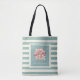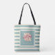 Beach bag or shopping bag in teal beige stripes for St Saint Tropez France tourists, residents or St Tropez lovers.