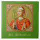 St. Sebastian (3rd century), patron of soldiers, was a career military man in the Roman army... and a Christian. If you ask most people how he died, they’d say that he was shot to death with arrows. They’d be wrong. Though left for dead on an archery practice range, thanks to the ministrations of St. Irene, he survived that “first” martyrdom. The “second”, however, proved fatal: he was beaten to death with clubs, his body thrown in a sewer. Because of his physical resilience, dogged determination, and capacity for endurance, St. Sebastian is also patron of athletes. + Image Credit: Antique image of St. Sebastian from a late 19th-century chromoxylographic devotional print published by St. Norbertus Verlag, Vienna, Austria, in the designer’s collection of religious ephemera. + Feast: January 20 + The St. Sebastian palette includes the following colours (with their hex codes): red-orange (#EC4FIC), red (#F62506), light greenish grey (#C9C19C), bright yellow-green (#B6BA05), dull yellow-green (#A7A948), green (#4B8C16),dark teal (#4C7B71), very dark blue (#375577), yellow (#F6D138), dark gold (#B7A446), and very dark brown (#6A4510).