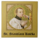 If bullied youngsters need a heavenly advocate, they need look no further than St. Stanislaus Kostka. Not to be confused with his namesake St. Stanislaus Szczepanowsky of Krakow (1030-1079), St. Stanislaus Kostka (1550-1568) was a young Polish nobleman who was bullied at his Jesuit boarding school in Vienna by his own brother Paul who found his younger sibling’s religious fervour and amiable personality trying. Having run away from school and against the wishes of his family, he joined the Society of Jesus (Jesuits) in 1567. Not 10 months later, he died of a fever on the Feast of the Assumption at the tender age of 17 in, as the saying goes, the odour of sanctity. + Feast: November 13 + Image Credit (SNV 25): Antique image of St. Stanislaus Kostka from a late 19th-century devotional print in chromoxylography published by St. Norbertus Verlag, Vienna, Austria, from the designer’s collection of religious ephemera.