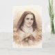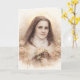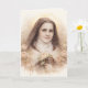 This elegant folded greeting features a soft vintage watercolor portrait of St. Thérèse of Lisieux, the Little Flower, holding her crucifix and roses—symbols of her deep love for Christ and her promise to spend Heaven doing good upon earth.