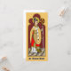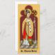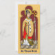 This is a colourized version of the antique engraving presented as our St. Thomas Becket Holding a Sword (M 033). In arriving at our visual reconstruction, we have followed the description by Francis Joseph Baigent who discovered, drew, and published it in the Journal of the British Archaeological Association, Vol. X (1855), pp. 74-75. We quote: “The most beautiful figure of this saint perhaps that has been preserved in any church in this country is represented in the accompanying plate (see plate 6). This we denuded of its whitewash in the year 1845, and it was then well preserved, and had evidently been covered up, on purpose prevent its being destroyed; …. The painting, which is engraved half the size of the original, is painted within a sunken panel in front of the Easter[n] Sepulchre and tomb of John Waller, esq., in the chantry, Stoke Charity church, Hants. … St. Thomas of Canterbury, in this example, is represented holding in his right hand a sword, being an emblem of his martyrdom. The nimbus encircling his head is gilt, the mitre being white and its lining blue; the face is noble and dignified, with an expression of sternness, but still pleasing. It has been remarked, that those paintings which have come down to us of this saint, all seem to have been done from some original portrait; and in every instance he is represented beardless. This painting, certainly, confirms this opinion in the strongest manner, from the features possessing such a peculiar character. The archbishop is represented in golden vestments, such as would be worn during the octave of the feast of our Lord's Nativity, the time of his martyrdom ; the dalmatic, in accordance with the rubrics, is of a bright red colour with golden fringe; over the chasuble is depicted the metropolitan pallium ornamented with its five patée fitchée crosses, the two upper ones being probably pins. The sandal is of a bright blue colour with its cross in gold. His crozier, which is held in the left hand, is also gilt; with the exception of the staff, which is painted white, intended perhaps to indicate silver. We saw this painting a few weeks since, and found its condition far from satisfactory, the face and other parts being much injured: ….” We have used our judgment in colorising details not otherwise described. + St. Thomas Becket is patron of secular clergy. + Feast: December 29 + Image Credit: The colourized version is a Saints_Aplenty Exclusive (SAE). + Feel free to change the colour(s) of the background and/or text. The Colour Palette postcard for this image provides suggested coordinating hues, but suit yourself!