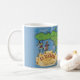A vintage colourful postcard map of St. Thomas repurposed on a mug.