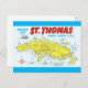 A vintage postcard map of the island of St. Thomas repurposed on a new postcard. This map is so detailed and well illustrated.
