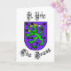 So, did St. Urho really scare the grasshoppers out of the vineyards that were eating all the grapes? Or is there another version? LOL! Today, we seem to struggle with what's true or not and this card is a pun on that. It's a St. Urho political card in a way. The front features the Finnish Coat of Arms a bit re-formatted for ol' brave St. Urho. The design has the Finnish lion but has a pitchfork, rather than the sword. Below his feet is a grasshopper, rather than a Russian sword. And, featured around are 9 grape bundles, rather than the roses that are on the real coat of arms. Purple and green are the St. Urho's day colours to represent purple for grapes and green for the grasshoppers. Designed by Sheila Cicchi at Brownielocks.com All Rights Reserved.
