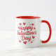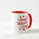 This festive image features the cheerful message "Happy Valentine's Day" in bold red cursive, surrounded by playful red hearts, dots, and flourishes on a clean white background. It's a vibrant and joyful design perfect for celebrating love and affection.